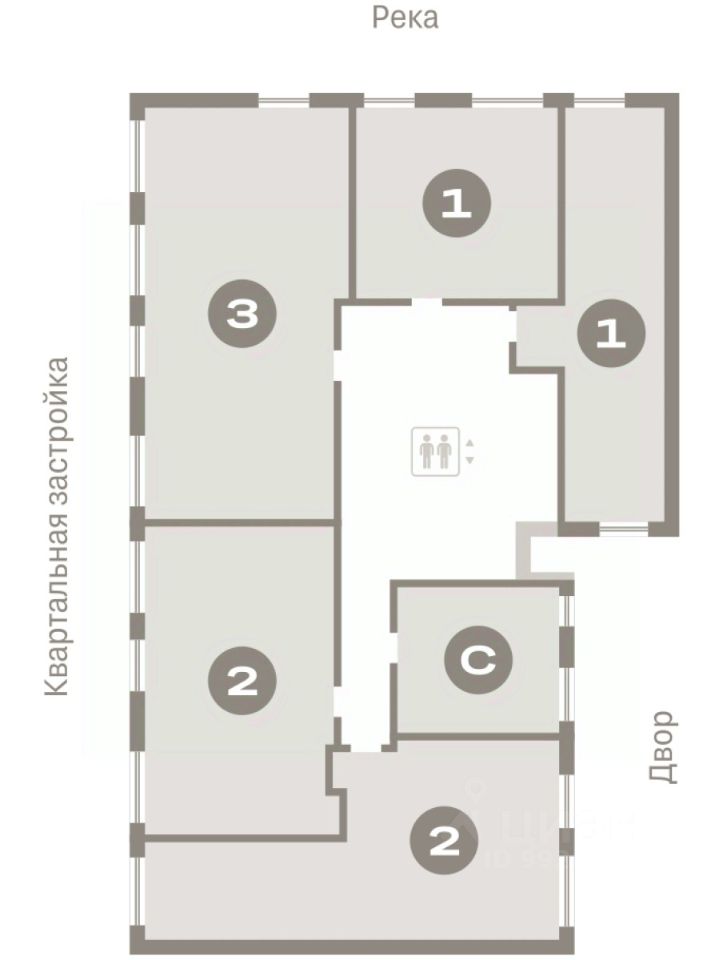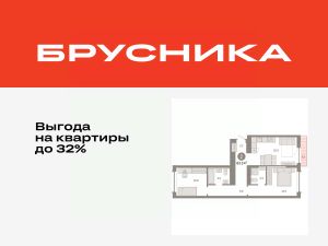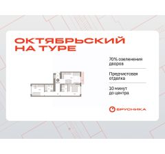 Квартира с кухней-гостиной и двумя спальнями в Октябрьском на Туре. Особенности планировки: вид во двор, разнесённые спальни, предчистовая отделка, мастер-спальня, балкон.