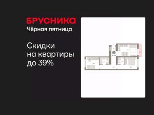 Квартира с кухней-гостиной и двумя спальнями в Октябрьском на Туре. Особенности планировки: вид во двор, разнесённые спальни, предчистовая отделка, мастер-спальня, балкон.
