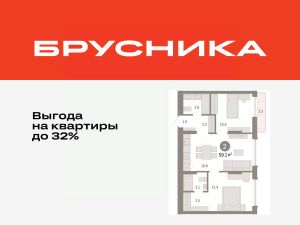 Квартира с кухней-гостиной и двумя спальнями в Октябрьском на Туре. Особенности планировки: второй санузел, гардеробная, разнесённые спальни, предчистовая отделка, мастер-спальня, балкон.