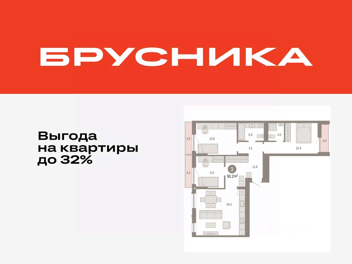 Квартира с кухней-гостиной и тремя спальнями в Октябрьском на Туре. Особенности планировки: второй санузел, вид во двор, лоджия, разнесённые спальни, предчистовая отделка, мастер-спальня, балкон.