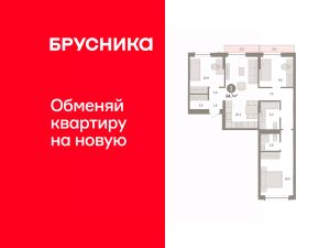 Квартира с кухней-гостиной и тремя спальнями в Октябрьском на Туре. Особенности планировки: балкон, вид во двор, второй санузел, гардеробная, мастер-спальня, предчистовая отделка, разнесённые спальни.
