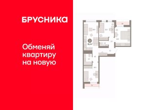 Просторная трехкомнатная квартира с предчистовой отделкой в ЖК "Республики 205" на 9 этаже. Общая площадь: 78.39 кв.м. Высота потолков 2.6 м.