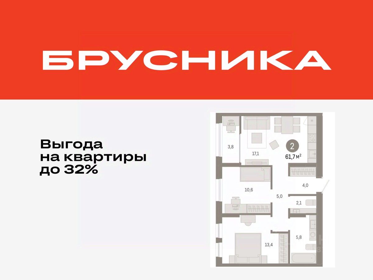 Двухкомнатная квартира с предчистовой отделкой в ЖК "Республики 205" на 17 этаже. Общая площадь: 61.65 кв.м., жилая: 24 кв.м., площадь просторной кухни-гостиной: 17.1 кв.м. Комнаты изолированные, все окна выходят на одну сторону. В квартире одна лоджия, один совмещенный и один раздельный санузел. Высота потолков 2.6 м.