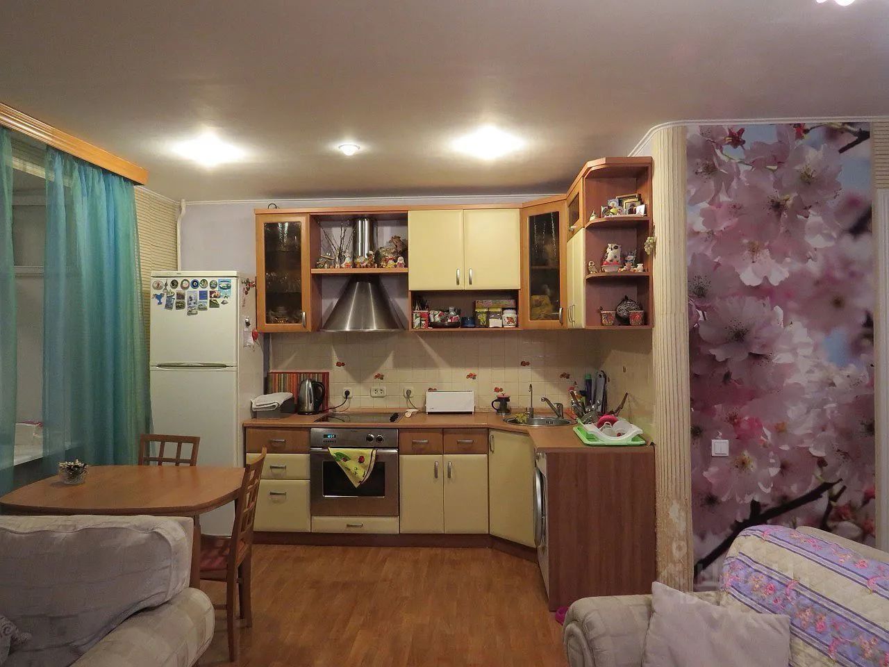 Квартира с перепланировкой: объединены кухня, гостиная и коридор, совмещен санузел, есть отдельная спальня. На полу линолеум, на стенах обои, потолок гипсокартон, санузел в кафеле с ванной. Балкон остеклен и немного утеплен ( зимой при открытых дверях на балконе растут цветы). Квартира очень теплая. Все окна выходят на юго-запад ( вечером солнышко). В квартире есть встроенная мебель: 2 шкафа-купе (mr doors), кухонный гарнитур (с встроенной варочной панелью, духовкой вытяжкой, фильтром для воды). По договоренности могу оставить и другую мебель.Во дворе большая детская площадка на несколько домов, достаточно парковочных мест. В доме есть лифт, хорошие спокойные соседи. Квартира на среднем этаже это самый комфортный вариант, лишенный недостатков крайних этажей, таких как шум от хлопающей двери в подъезде, звука автомобильных моторов и сигнализаций, протекание крыши и прочих. Дом находится в развитом районе города, рядом остановка, 5-я поликлиника, школы, ТРЦ Колумб.