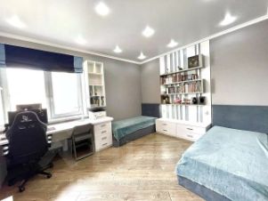 Сама квартира полностью готова к проживанию и оборудована всем необходимым. Особенно стоит отметить наличие трех гардеробных: в прихожей, детской комнате и спальне. Эти пространства позволяют хранить все необходимые вещи, включая сезонные, и экономят пространство в жилых комнатах.