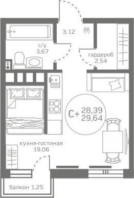 Прямая продажа от застройщика! Продается студия в строящемся ЖК "Меридиан ЮГ". Общая площадь — 28.39 м², на 9 этаже из 17. Площадь кухни — 19.06 м².