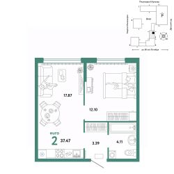Продается 2комнатная квартира на 5 этаже от застройщика Страна Девелопмент. Площадь квартиры 37,48 кв. м. Стоимость указана без учета акций.