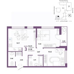 Продается 3комнатная квартира на 12 этаже от застройщика Страна Девелопмент. Площадь квартиры 53,97 кв. м. Стоимость указана без учета акций.
