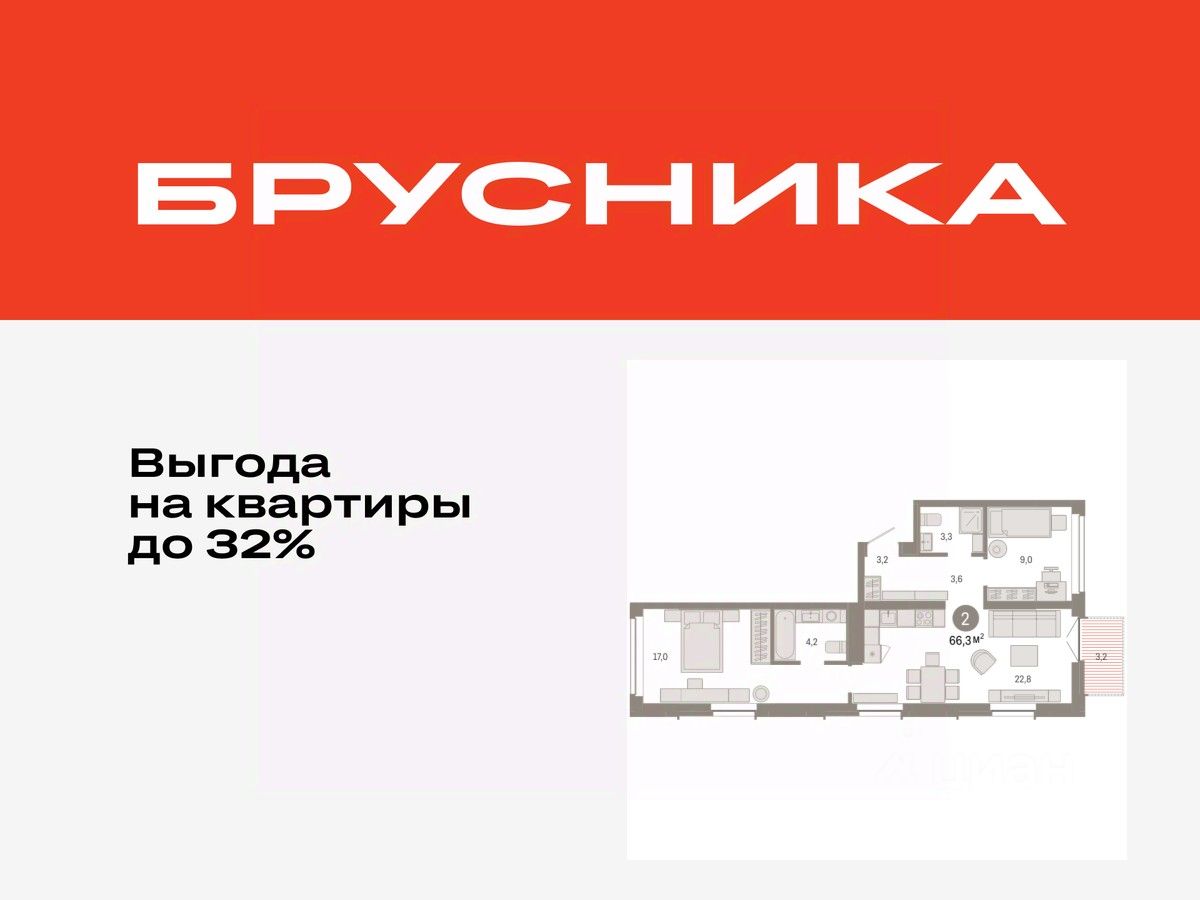 2-комн. квартира от застройщика с предчистовой отделкой в ЖК "Республики 205" на 9 этаже. Общая площадь: 66.28 кв.м., жилая: 26 кв.м., площадь просторной кухни-гостиной: 22.8 кв.м. Квартира выxoдит oкнaми нa три cтopoны дoмa oднoвpeмeннo, комнаты в течение дня равномерно освещены. В квартире один балкон, два совмещенных санузла. Высота потолков 2.7 м.