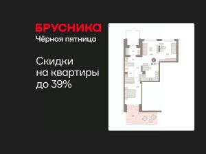 Квартира с кухней-гостиной и двумя спальнями в Октябрьском на Туре. Особенности планировки: гардеробная, окна в пол, без отделки, вид во двор, отдельный вход, панорамное остекление, свободная планировка, разнесённые спальни, мастер-спальня, терраса.