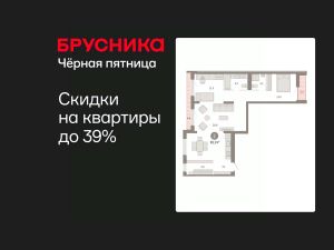 Квартира с кухней-гостиной и двумя спальнями в Октябрьском на Туре. Особенности планировки: гардеробная, без отделки, вид во двор, свободная планировка, лоджия, разнесённые спальни, мастер-спальня.