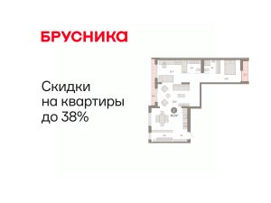 Квартира с кухней-гостиной и двумя спальнями в Октябрьском на Туре. Особенности планировки: вид во двор, гардеробная, лоджия, мастер-спальня, разнесённые спальни, свободная планировка.