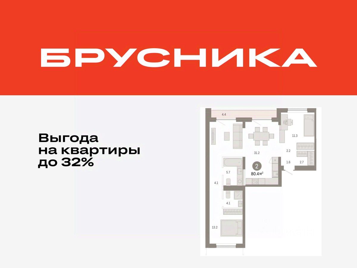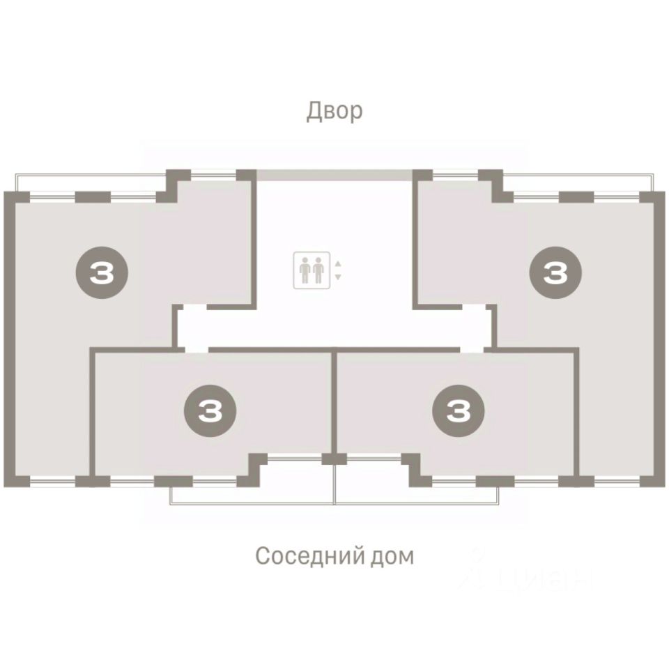 Квартира с кухней-гостиной и двумя спальнями в Октябрьском на Туре. Особенности планировки: второй санузел, без отделки, вид во двор, свободная планировка, разнесённые спальни, мастер-спальня, терраса на крыше.
