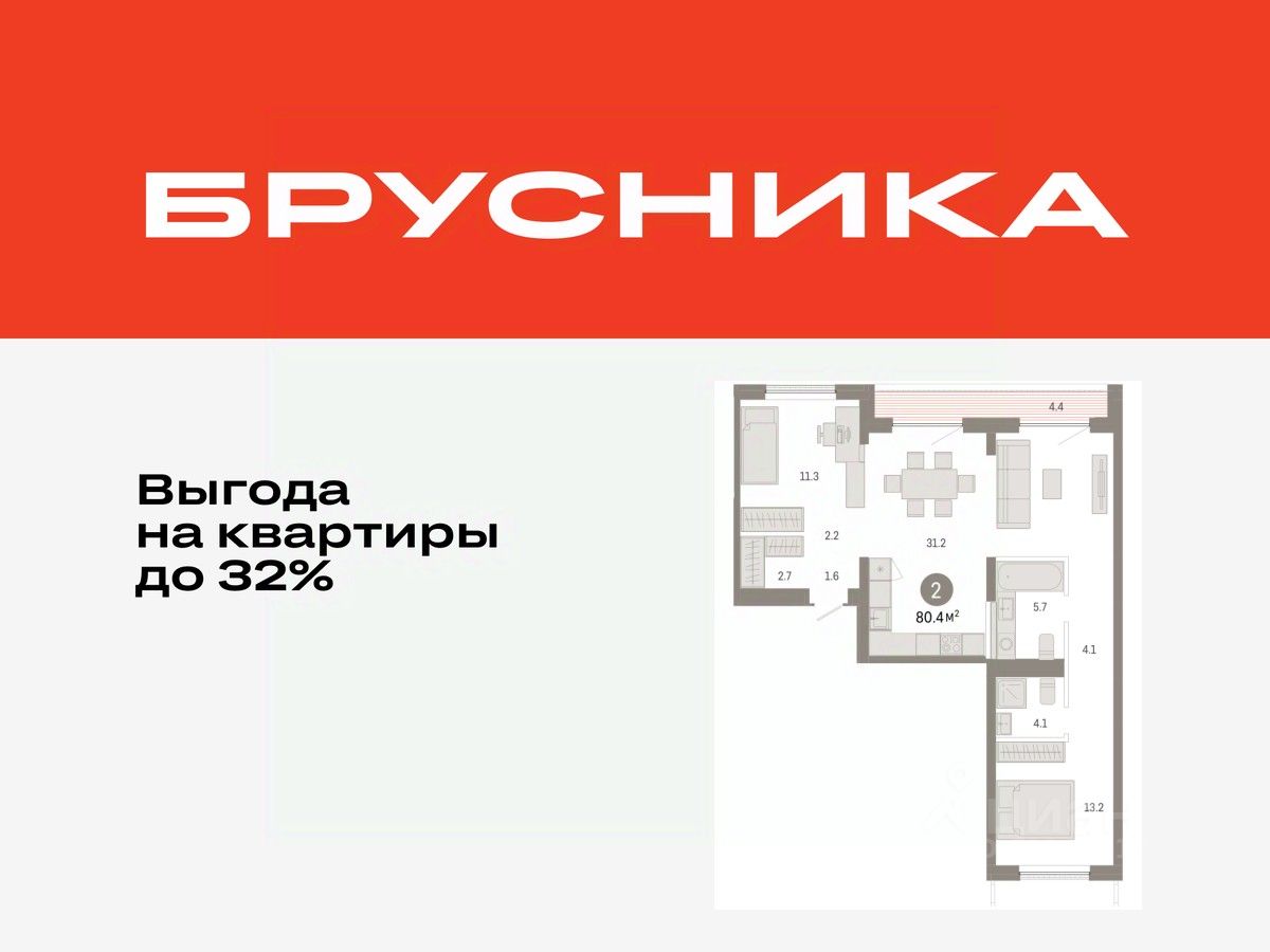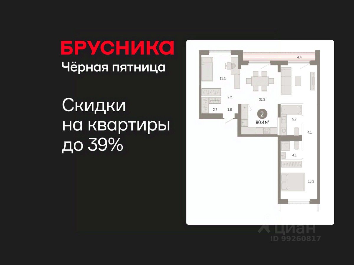 Квартира с кухней-гостиной и двумя спальнями в Октябрьском на Туре. Особенности планировки: второй санузел, без отделки, вид во двор, свободная планировка, разнесённые спальни, мастер-спальня, терраса на крыше.