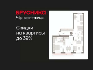 Квартира с кухней-гостиной и двумя спальнями в Октябрьском на Туре. Особенности планировки: гардеробная, без отделки, вид во двор, свободная планировка, разнесённые спальни, мастер-спальня, терраса на крыше.