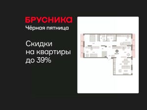 Квартира с кухней-гостиной и четырьмя спальнями в Октябрьском на Туре. Особенности планировки: второй санузел, гардеробная, без отделки, рабочий кабинет, вид во двор, свободная планировка, разнесённые спальни, мастер-спальня, балкон.