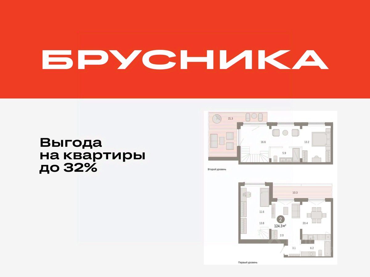 Двухуровневая квартира с кухней-гостиной и двумя спальнями в Октябрьском на Туре. Особенности планировки: гардеробная, без отделки, вид на реку, двухуровневая, свободная планировка, разнесённые спальни, терраса на крыше.