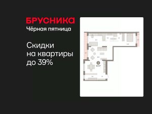 Квартира с кухней-гостиной и двумя спальнями в Октябрьском на Туре. Особенности планировки: гардеробная, без отделки, вид во двор, свободная планировка, разнесённые спальни, мастер-спальня, терраса на крыше.