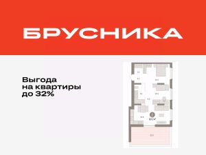 Квартира с кухней-гостиной и двумя спальнями в Октябрьском на Туре. Особенности планировки: гардеробная, без отделки, свободная планировка, мастер-спальня, терраса на крыше.