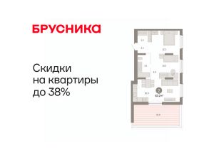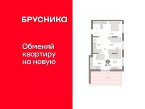 Квартира с кухней-гостиной и двумя спальнями в Октябрьском на Туре. Особенности планировки: мастер-спальня, свободная планировка.