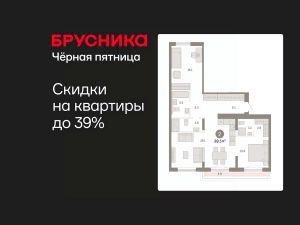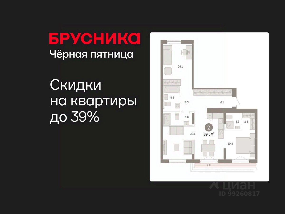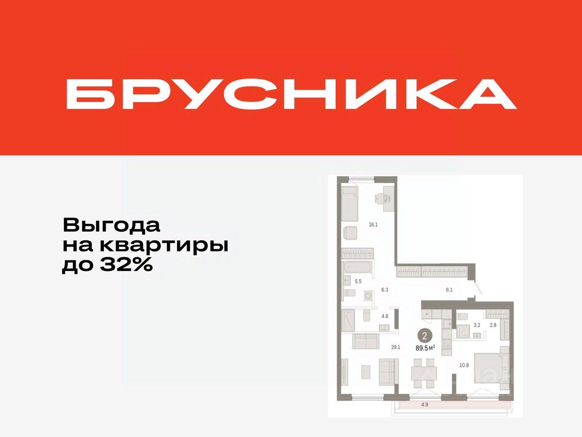 Квартира с кухней-гостиной и двумя спальнями в Октябрьском на Туре. Особенности планировки: гардеробная, без отделки, вид во двор, свободная планировка, разнесённые спальни, мастер-спальня, терраса на крыше.