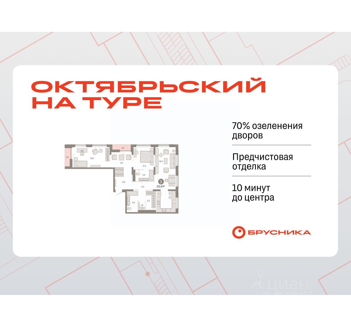 Квартира с кухней-гостиной и тремя спальнями в Октябрьском на Туре. Особенности планировки: без отделки, вид на реку, свободная планировка, лоджия, мастер-спальня, постирочная.