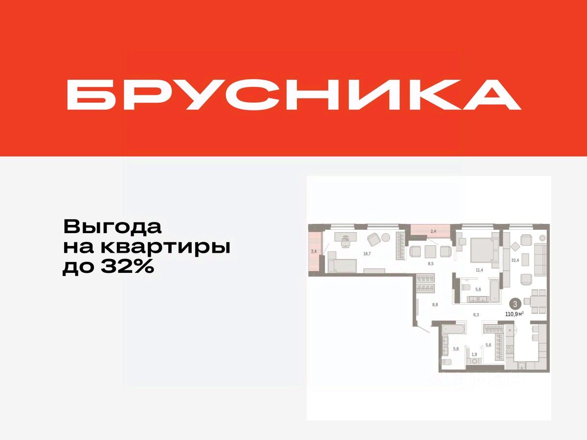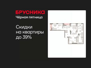 Квартира с кухней-гостиной и тремя спальнями в Октябрьском на Туре. Особенности планировки: без отделки, свободная планировка, лоджия, мастер-спальня, постирочная.