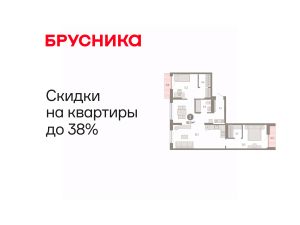Квартира с кухней-гостиной и двумя спальнями в Октябрьском на Туре. Особенности планировки: балкон, вид во двор, лоджия, мастер-спальня, предчистовая отделка, разнесённые спальни.