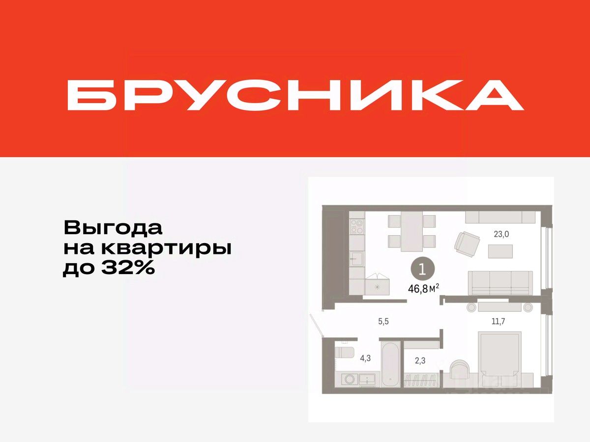 Квартира с кухней-гостиной и одной спальней в Октябрьском на Туре. Особенности планировки: вид во двор, предчистовая отделка.