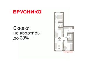 Квартира с кухней-гостиной и двумя спальнями в Октябрьском на Туре. Особенности планировки: вид во двор, разнесённые спальни, предчистовая отделка, мастер-спальня, балкон.