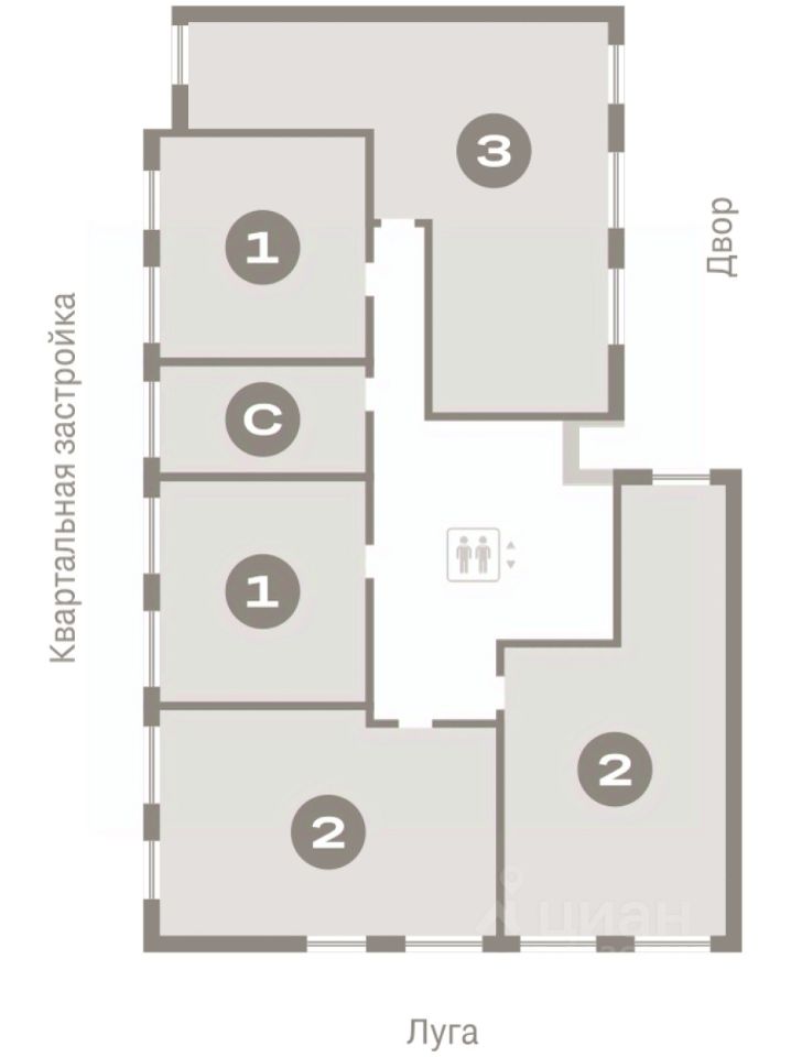 Квартира с кухней-гостиной и двумя спальнями в Октябрьском на Туре. Особенности планировки: вид во двор, разнесённые спальни, предчистовая отделка, мастер-спальня, балкон.