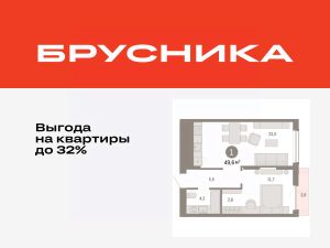 Квартира с кухней-гостиной и одной спальней в Октябрьском на Туре. Особенности планировки: вид во двор, предчистовая отделка, балкон.