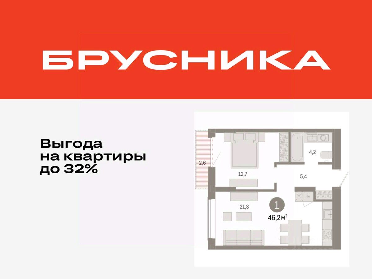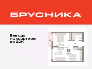 Квартира с кухней-гостиной и одной спальней в Октябрьском на Туре. Особенности планировки: предчистовая отделка, балкон.