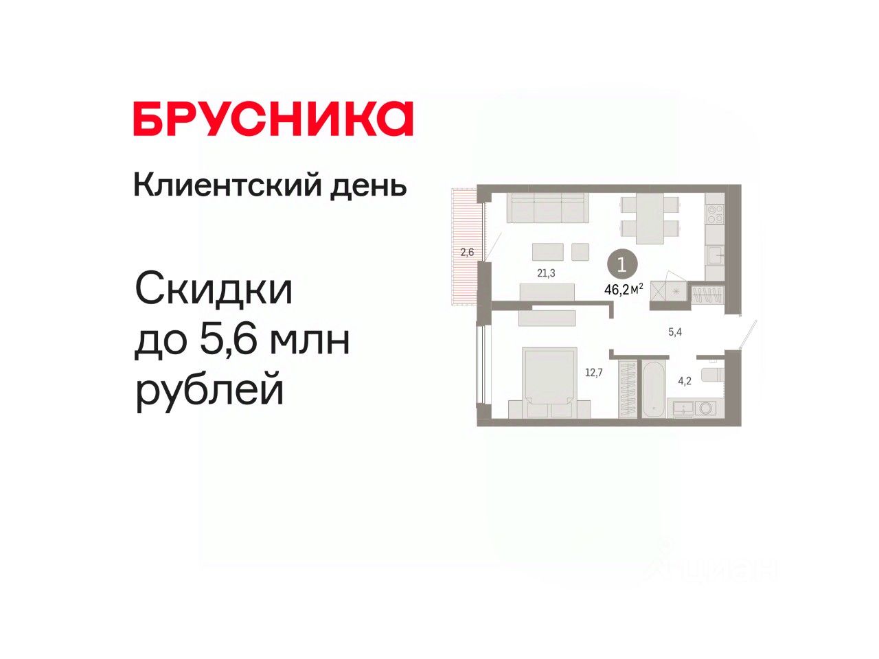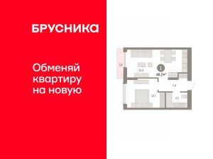 Квартира с кухней-гостиной и одной спальней в Октябрьском на Туре. Особенности планировки: балкон, предчистовая отделка.