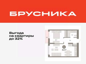 Квартира с кухней-гостиной и одной спальней в Октябрьском на Туре. Особенности планировки: предчистовая отделка, балкон.