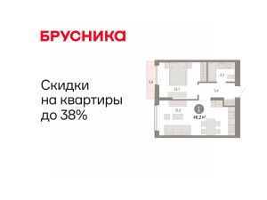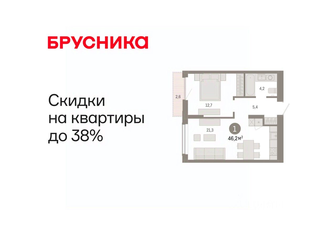 Квартира с кухней-гостиной и одной спальней в Октябрьском на Туре. Особенности планировки: предчистовая отделка.