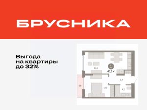 Квартира с кухней-гостиной и одной спальней в Октябрьском на Туре. Особенности планировки: предчистовая отделка, балкон.