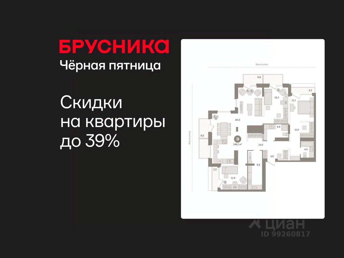 Квартира с кухней-гостиной и тремя спальнями в Октябрьском на Туре. Особенности планировки: второй санузел, гардеробная, без отделки, вид на реку, вид во двор, свободная планировка, терраса, постирочная, балкон.