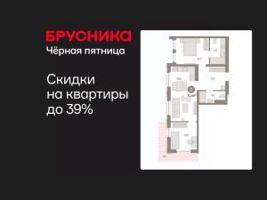 Квартира с кухней-гостиной и двумя спальнями в Октябрьском на Туре. Особенности планировки: вид во двор, предчистовая отделка, мастер-спальня, балкон.