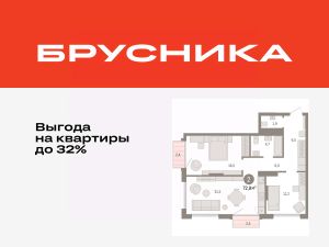 Квартира с кухней-гостиной и двумя спальнями в Октябрьском на Туре. Особенности планировки: второй санузел, вид во двор, предчистовая отделка, балкон.