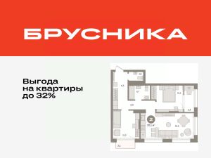 Квартира с кухней-гостиной и двумя спальнями в Октябрьском на Туре. Особенности планировки: второй санузел, вид во двор, тёплая лоджия, предчистовая отделка, балкон.
