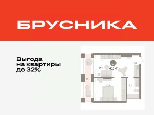 Квартира с кухней-гостиной и одной спальней в Октябрьском на Туре. Особенности планировки: вид во двор, предчистовая отделка, терраса на крыше.
