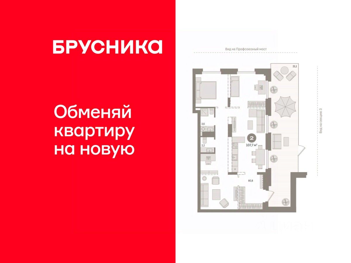 Квартира с кухней-гостиной и двумя спальнями в жилом районе "Речной порт". Особенности планировки: вид во двор, второй санузел, окна в пол, отдельный вход, свободная планировка, терраса.