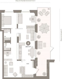 Квартира с кухней-гостиной и двумя спальнями в жилом районе "Речной порт". Особенности планировки: вид во двор, второй санузел, окна в пол, отдельный вход, потолки 3 м и выше, свободная планировка, терраса.