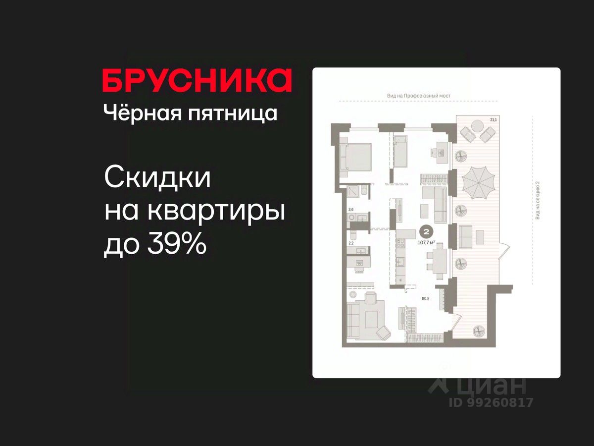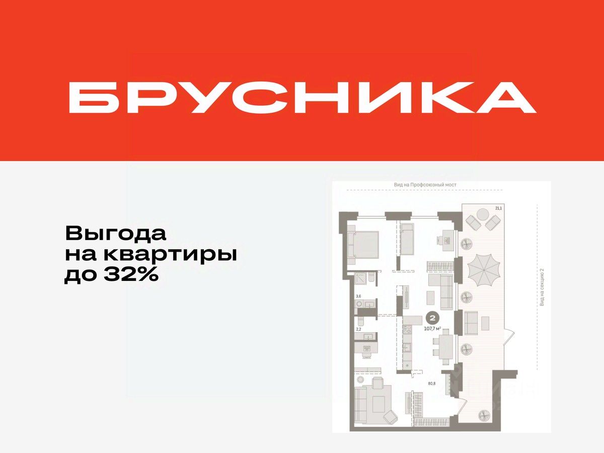 Квартира с кухней-гостиной и двумя спальнями в жилом районе "Речной порт". Особенности планировки: окна в пол, без отделки, вид во двор, отдельный вход, свободная планировка, терраса.
