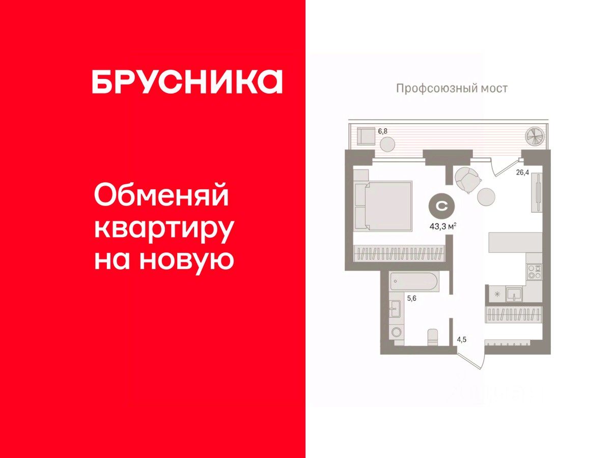 Квартира с кухней-гостиной и одной спальней в жилом районе "Речной порт". Особенности планировки: балкон, вид во двор, окна в пол, предчистовая отделка.