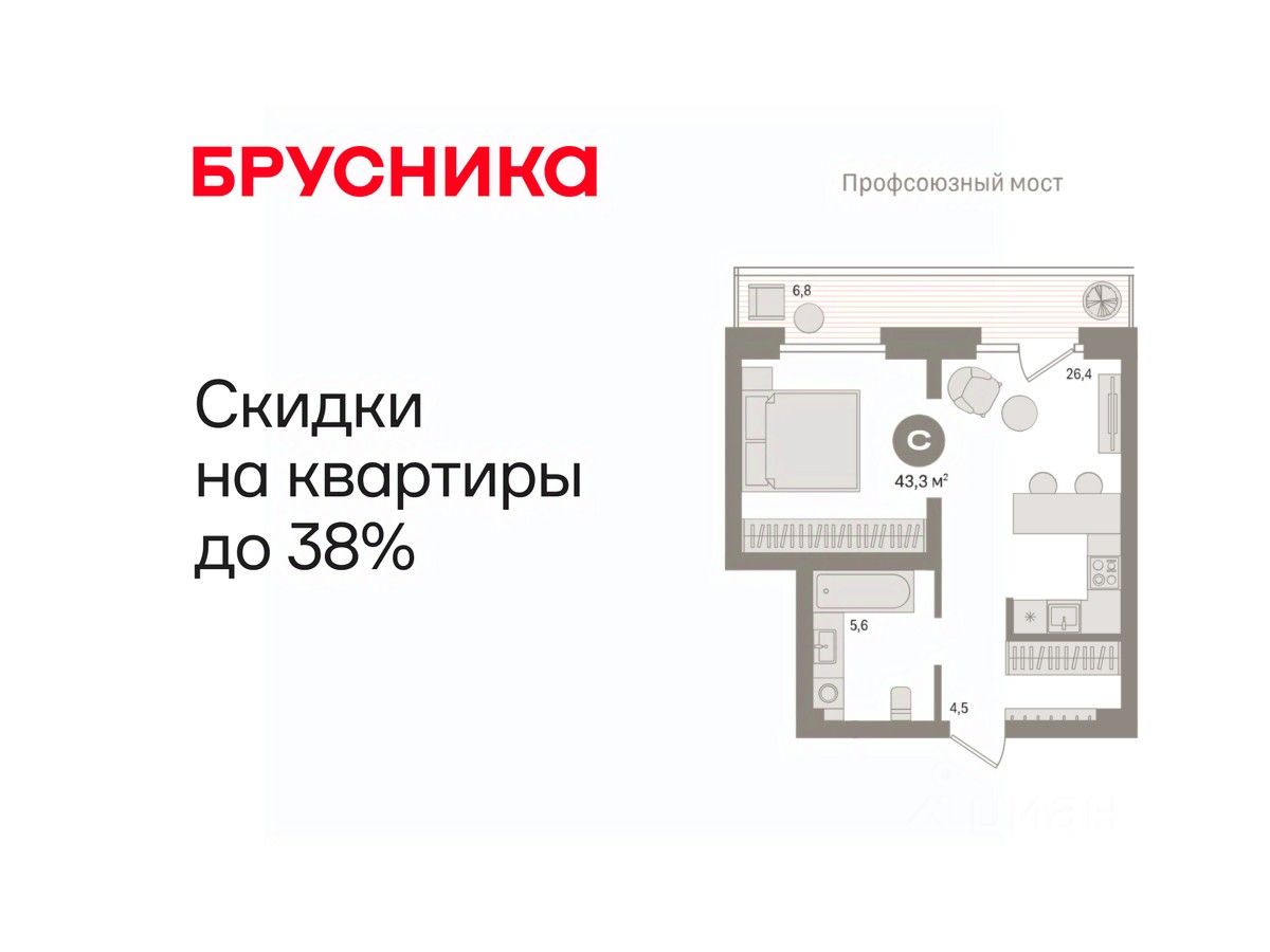 Квартира с кухней-гостиной и одной спальней в жилом районе "Речной порт". Особенности планировки: окна в пол, предчистовая отделка.
