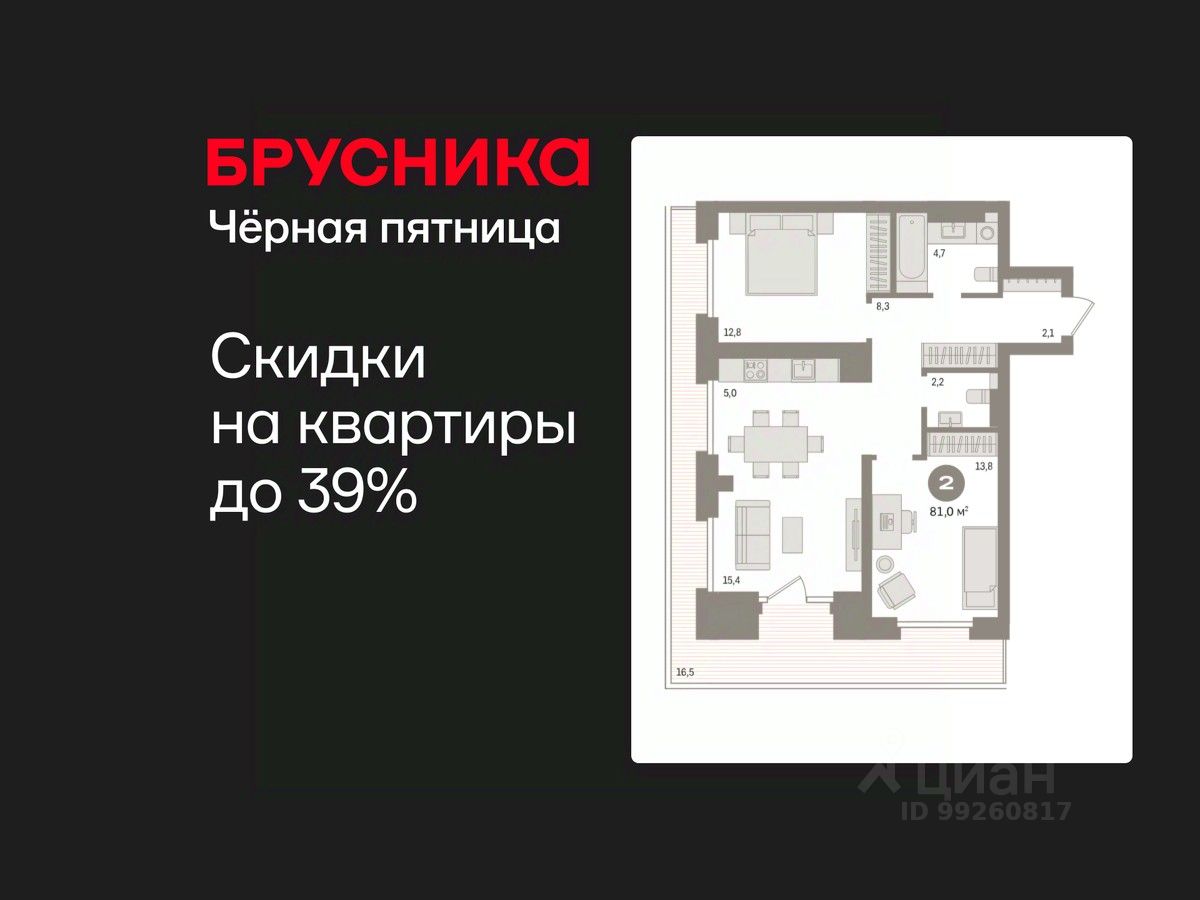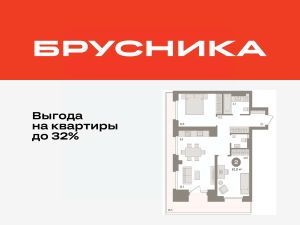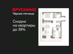 Квартира с кухней-гостиной и двумя спальнями в жилом районе "Речной порт". Особенности планировки: второй санузел, окна в пол, вид во двор, предчистовая отделка, балкон.