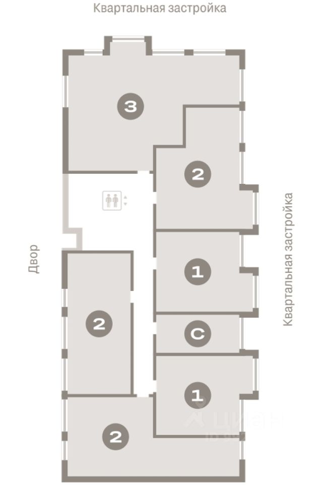 Квартира с кухней-гостиной и тремя спальнями в жилом районе "Зарека". Особенности планировки: тёплая лоджия, разнесённые спальни, предчистовая отделка, мастер-спальня, постирочная.