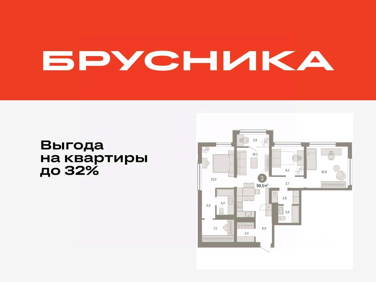Продается 3-комн. квартира с предчистовой отделкой в ЖК "Зарека" на 7 этаже. Общая площадь: 99.47 кв.м., площадь просторной кухни-гостиной: 18.1 кв.м. Высота потолков 2.7 м.